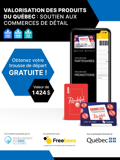 En partenariat avec l’entreprise québécoise Freebees, et avec le soutien financier du gouvernement du Québec, le Regroupement des SDC du Québec est heureux de soutenir les commerces de détail et de valoriser les produits vérifiés par Les Produits du Québec à travers le programme de récompenses Freebees.